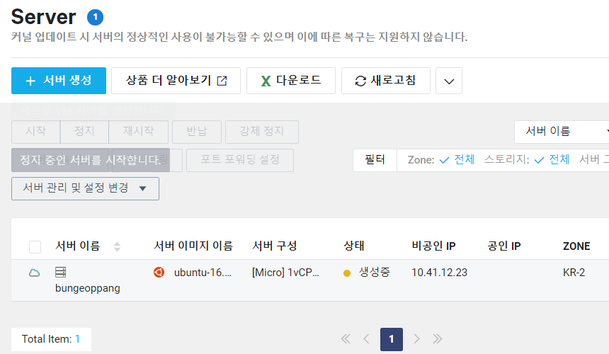 ACG설정, 내가 만든 클라우드 서버의 어떤 포트를 개방할지 등을 설정하는 방화벽. 기능 default 사용