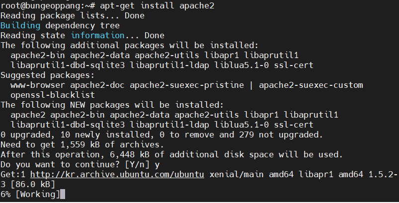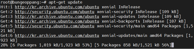 apt-get update 를 우선 입력하고 다음을 순서대로 입력하자