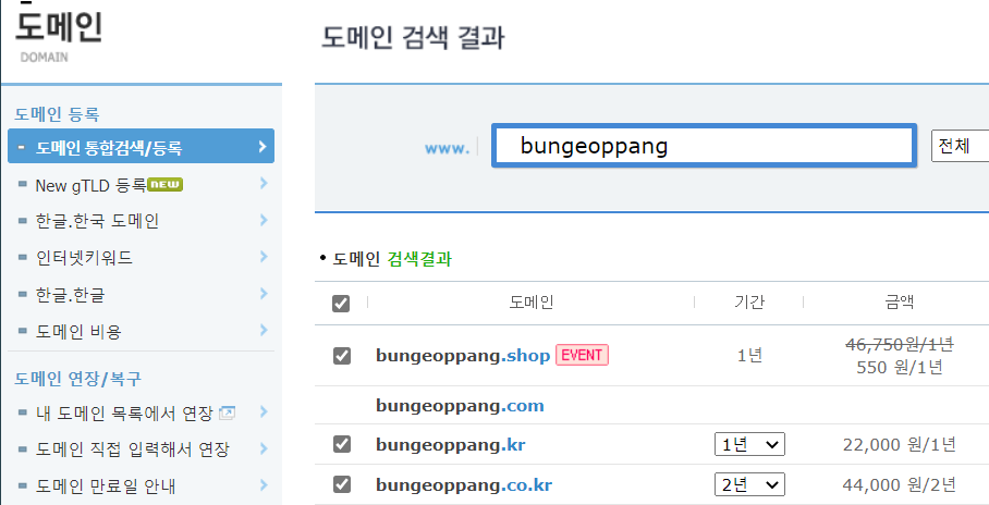 카페24 도메인에서 도메인을 검색하고 구매하자