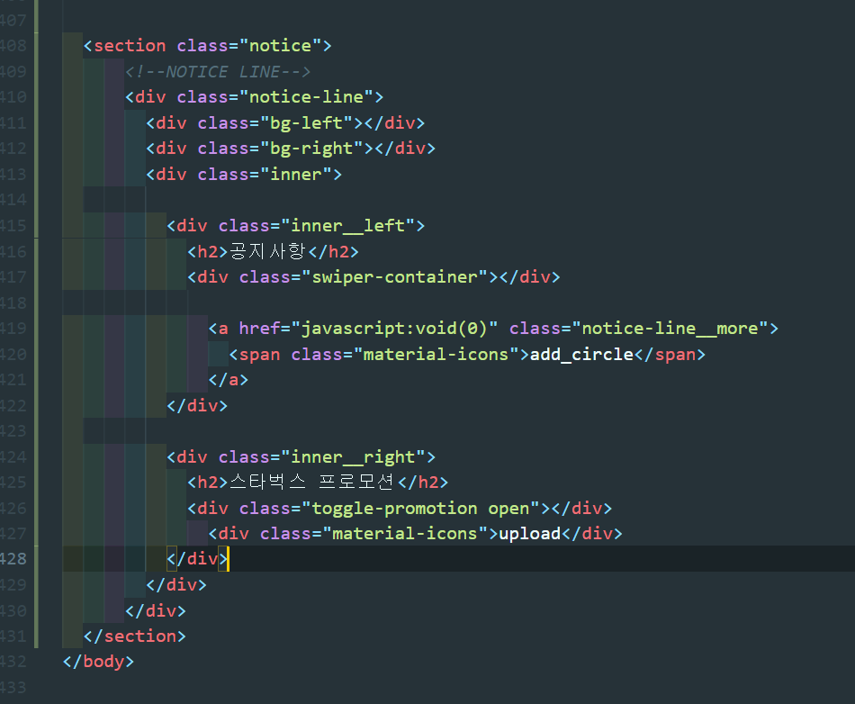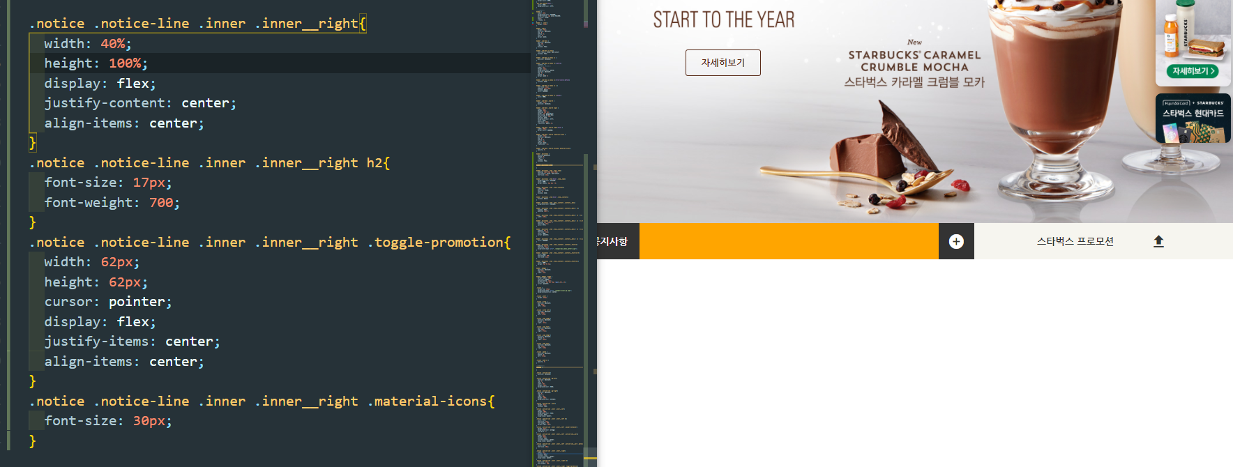 오른쪽부분도 이와같이 작성해서 toggle-promotion이 우측에 배치되도록 해주자.