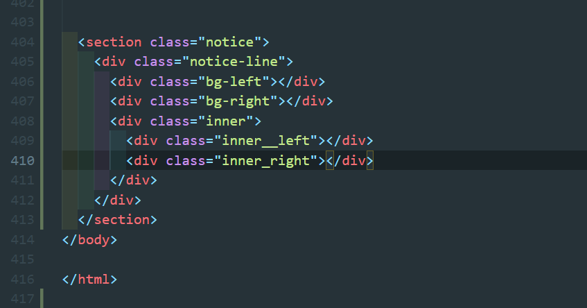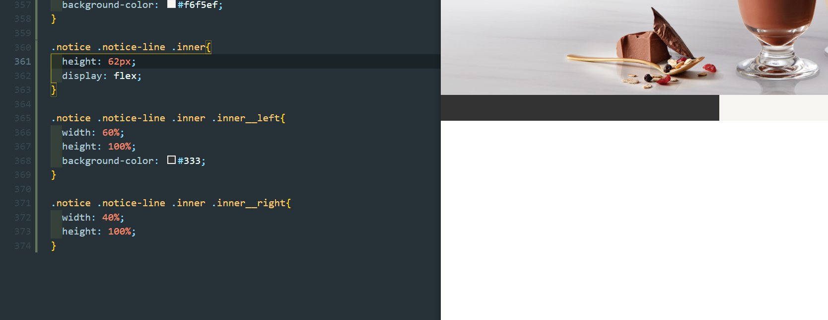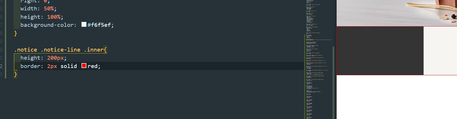 inner에 따라 크기가 바뀐다. 도대체 왜? 부모요소인 notice-line의 height 기본속성 값이 auto이기 때문에 최대한 줄어들려고 하다가 자식 성분의 inner에 걸리어서 200px이 된 것이다. 어찌보면 inner값만 바꾸는 것으로 이 크기를 조절할 수 있게 되었다.