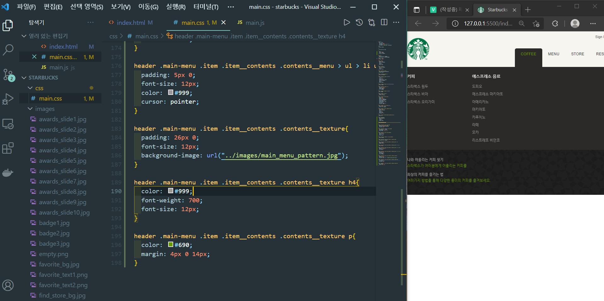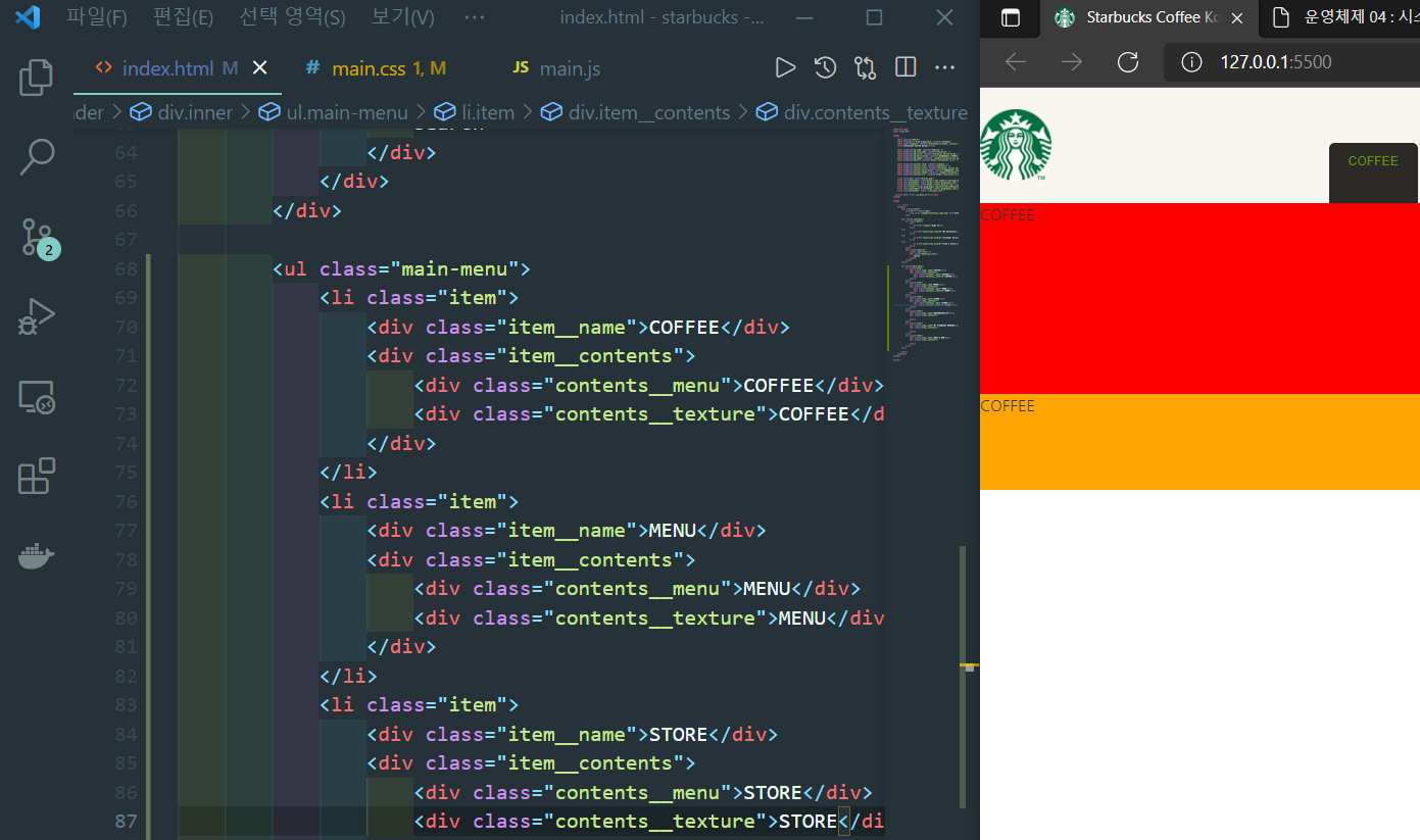 또한 content__menu를 고른부분에 height를 없애서 텍스트에 따라 자동으로 크기가 조절될 수 있도록했다. 그리고 배경색상도 변경했다.