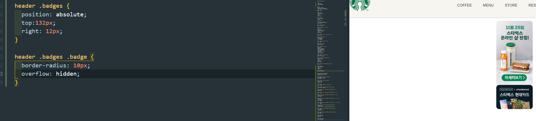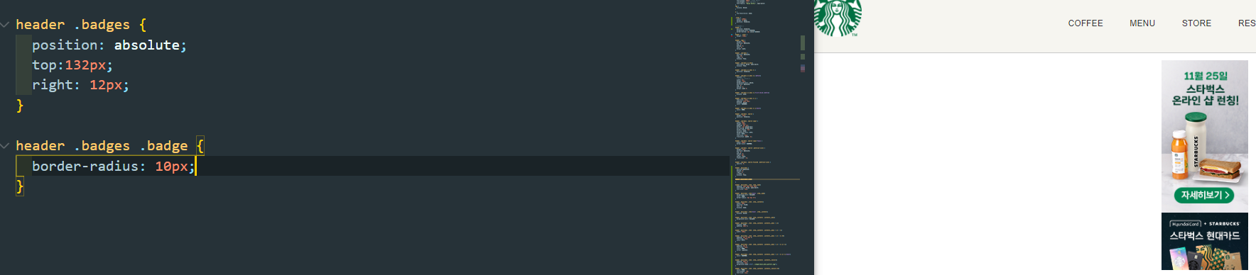 이번에는 header 바로 아래 웹페이지 오른쪽에 나오는 뱃지들을 만들어보자