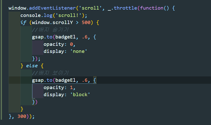 이제 뱃지가 일정 페이지 이하로 내려가면 사라지도록 js파일을 수정해주자.