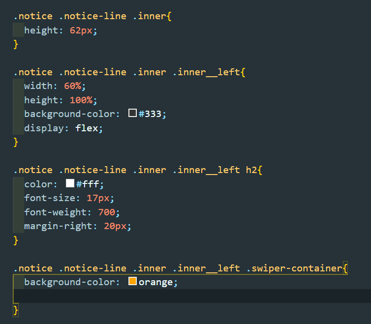 하지만 위와 같이 작성해도 icon이 파란색으로 보인다. 이건 a태그때문에 발생한 문제점이다. 그리고 swiper의 색도 오렌지색이 보이도록 만들어주자.