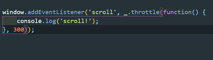 그래서 위와 같이 만들어주면된다. throttle 함수를 사용하면 시간단위로 부하를 주어서 함수가 나올 수 있는데 걸리는 시간을 제한을 줄 수 있다.