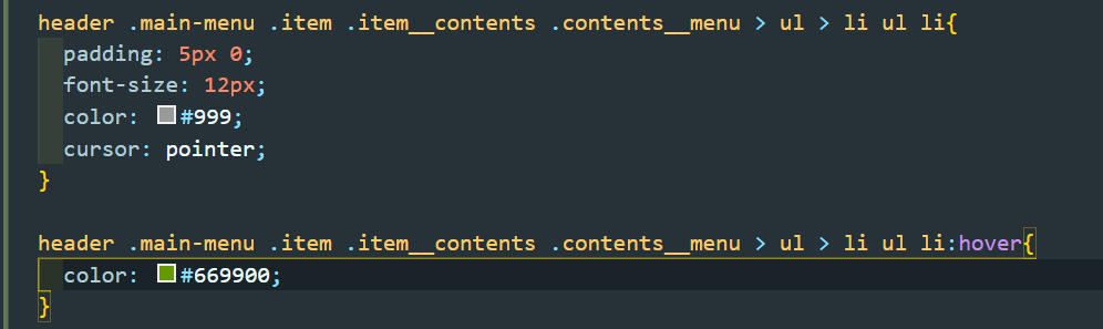 특이한 점은 가장 깊은 부분에 cursor을 사용해서 손가락 모양으로 바뀔 수 있도록해준다.