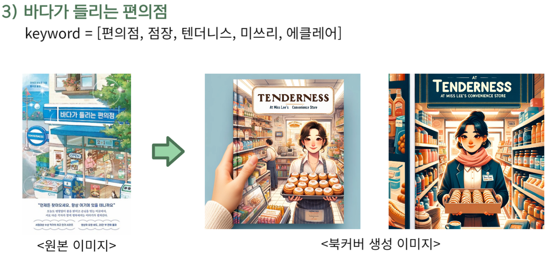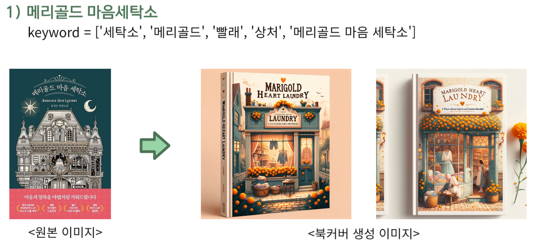 예시를 보면, 생각보다 꽤 잘 뽑아준다. 하지만, 뭐랄까 우리가 원하는. 우리가 익숙한 북커버 형태라기 보다는, 외국 동화 도서 같은 느낌이 강했고, 그림체가 고정되는 느낌이 많이 들었다.