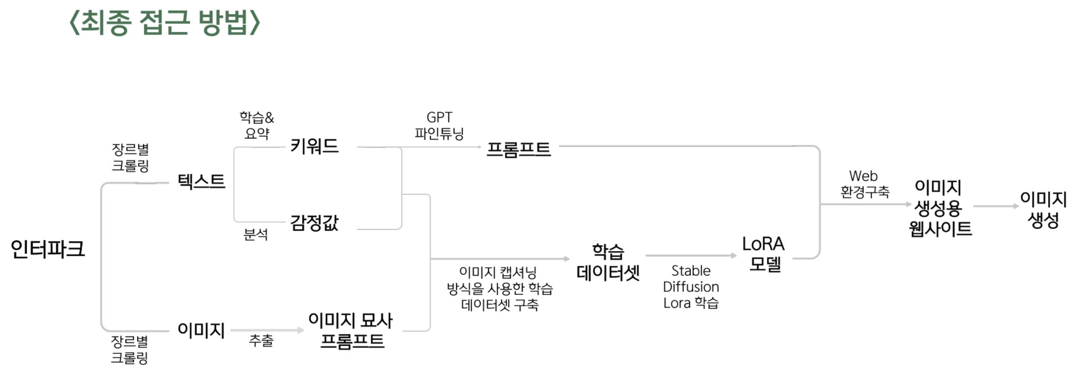 그래서 우리는 최종적으로 개발자가 직접 더 많은 부분을 다루고 수정할 수 있는 Stable Diffsuion을 활용하기로 하였고, 학습은 LoRA와 Dreambooth를 사용하기로 했다.