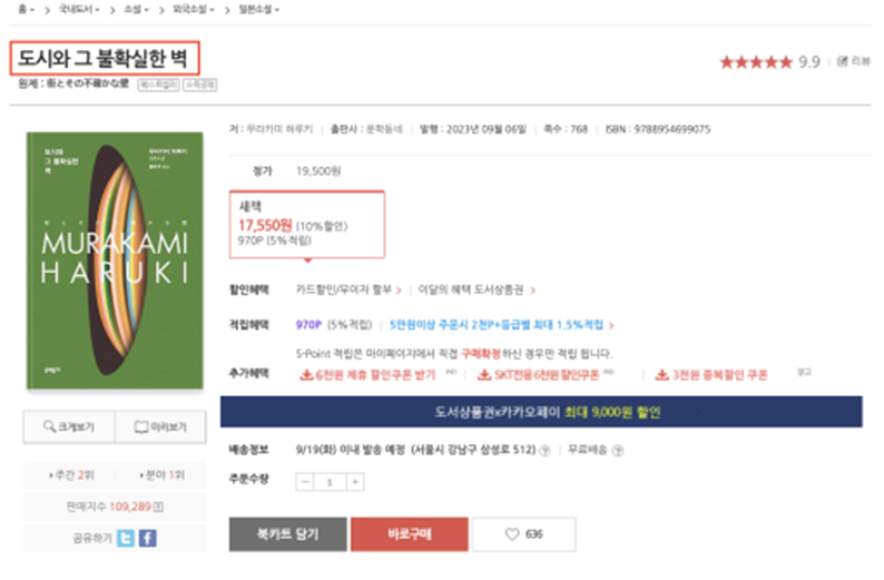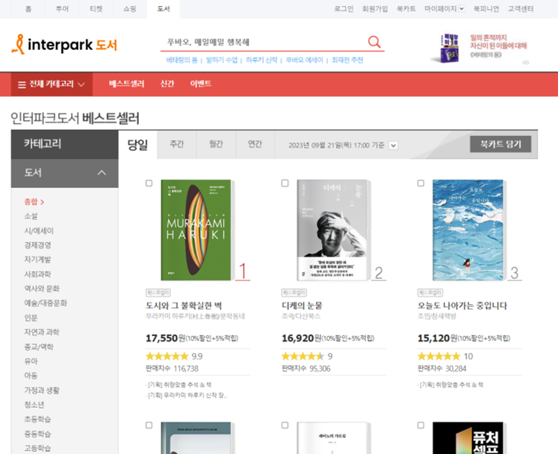 소설, 시/에세이, 가정과 생활, 자연과학, 인문