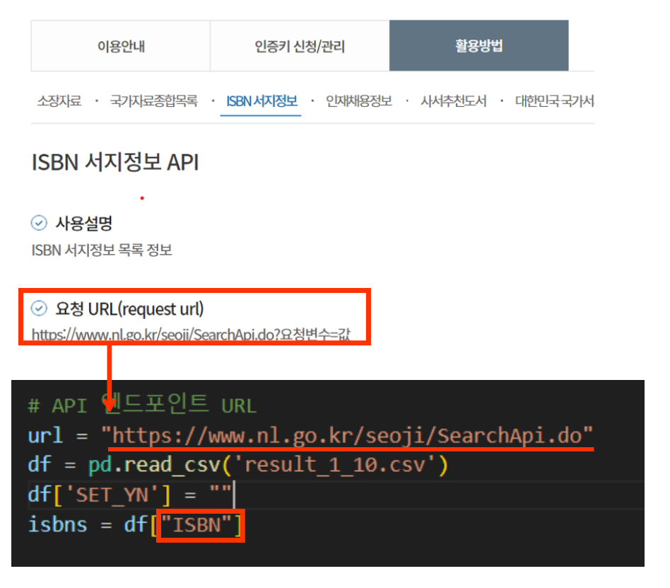 후에 학습을 진행할 때, 특히 이미지 학습 관련하여 소설 전집과 같은 비슷한 이미지의 연속이 너무 많이 있다면 과적합이 일어날 수 있을지도 모른다 생각했다. 이에, ISBN값(도서별 고유 일련번호)을 사용하는 ISBN 서지 정보 API를 활용하여, 세트 여부를 구분했다.