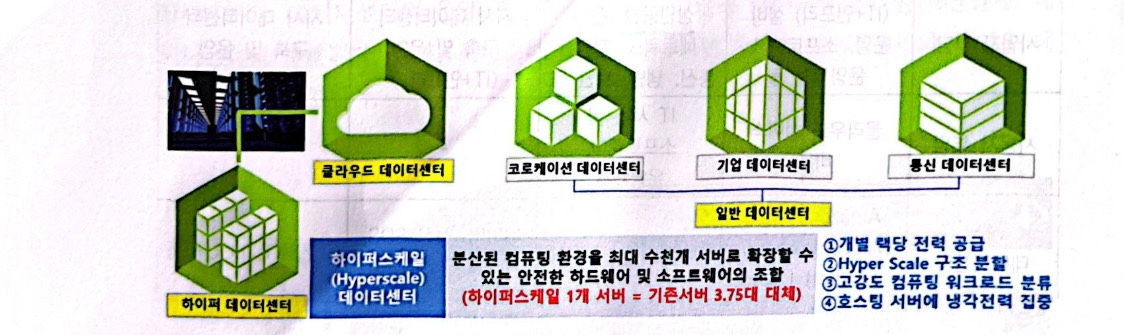 하이퍼스케일은 일반적으로 빅 데이터 또는 클라우드 컴퓨팅 용도로 컴퓨팅에서 이루어지는 대규모 확장에 관한 모든 것을 의미한다. 하이퍼스케일 인프라는 높은 수준의 성능과 처리량, 중복성을 이끌어 내고 수평적 확장으로 내결함성 및 고가용성을 지원할 수 있도록 설계된다. 하이퍼스케일 컴퓨팅은 화장성이 큰 서버 아키텍처 및 가상 네트워킹에 의존하는 경우가 많다. 마지막으로, 하이퍼스케일 데이터센터는 공간 개념에서 38,000m2(400,000ft2) 이상의 상면공간(IT룸)에 모듈단위로 첨단 인프라설비를 갖춘 초대형 데이터센터로 정의하고 있으나 하이퍼스케일 데이터센터에 대한 표준화된 분류기준은 현재까지는 없다. 하이퍼스케일 데이터센터는 IT운영 측면에서는 최소 10만 대의 IT장비 가동, 1만 대 이상의 랙-서버 보유의 규모로 정의하기도 한다.