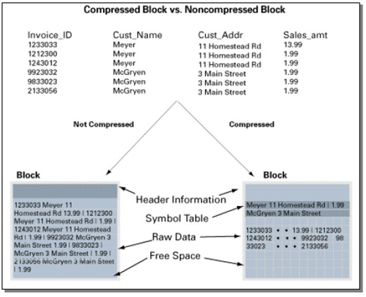 - 11g에 와서는 일반적인 DML 작업에 대해서도 압축이 가능해졌기 때문에, OLTP 시스템에서 데이터에 대한 변경이 발생하는 테이블에 대해서도 압축을 사용할 수 있게 되었다.