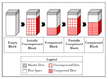 - 압축된 블록은 읽기 전용 모드에서만 효율적으로 관리