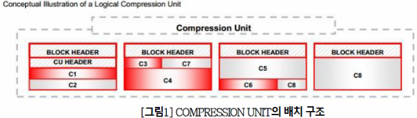압축된 데이터는 CU로 저장되며, 하나의 CU는 여러 데이터 블록을 포함할 수 있다.