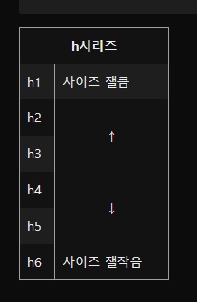 <h6> h1은 페이지당 하나만 사용을 권장한다 / 강조느낌으로
