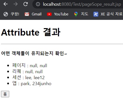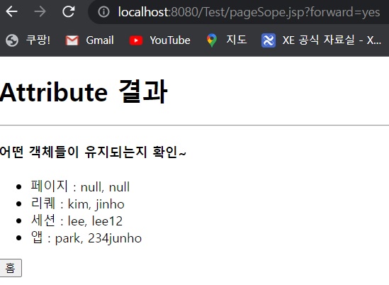 <li>2. request : 현재 페이지에서만 유지되는 객체. 단, forward시 이동해도 유지</li>