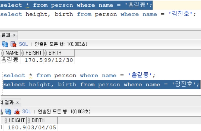 "SELECT * FROM 테이블 WHERE 조건1, 조건2"와 같이 사용합니다.
