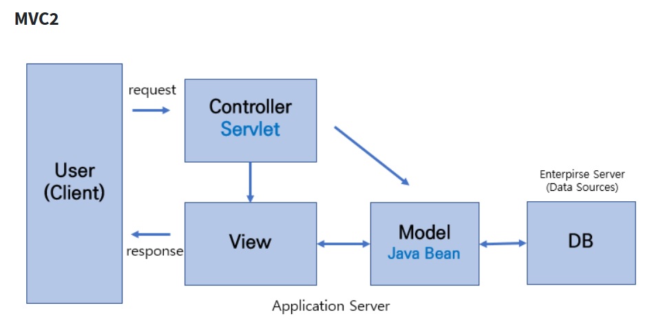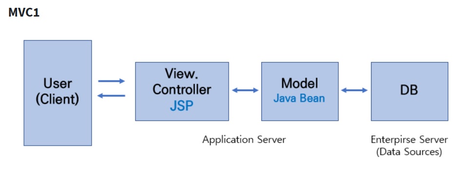 디비 + 화면 + 제어가 하나의 묶음이였던 MVC1의 형태를