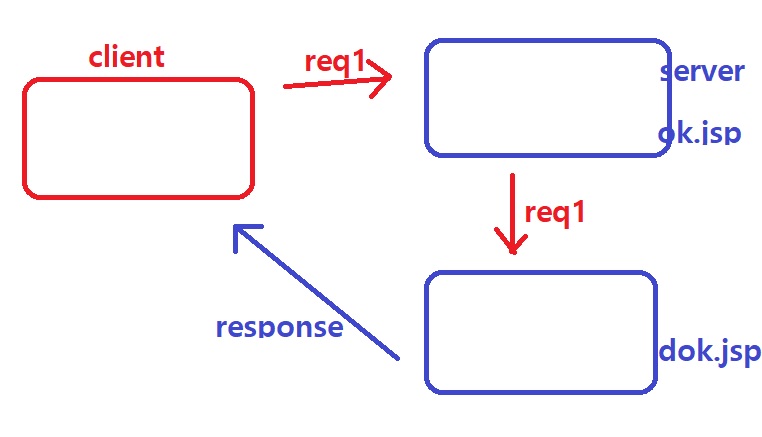 2) server안에 있는 ok.jsp에게 요청(request)을 보냄
