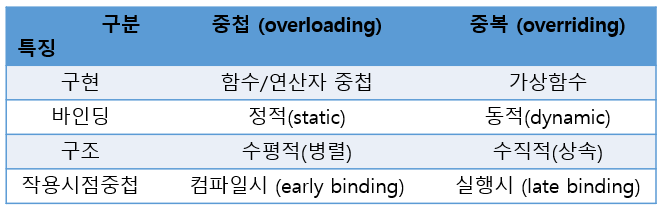 개수, 형이 완전히 같아야 한다.- 가상함수의 구현을 중복(overriding)이라 한다.