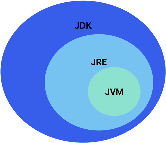 - JRE - Runtime environment, JVM + ClassLoader, Bytecode Verifier