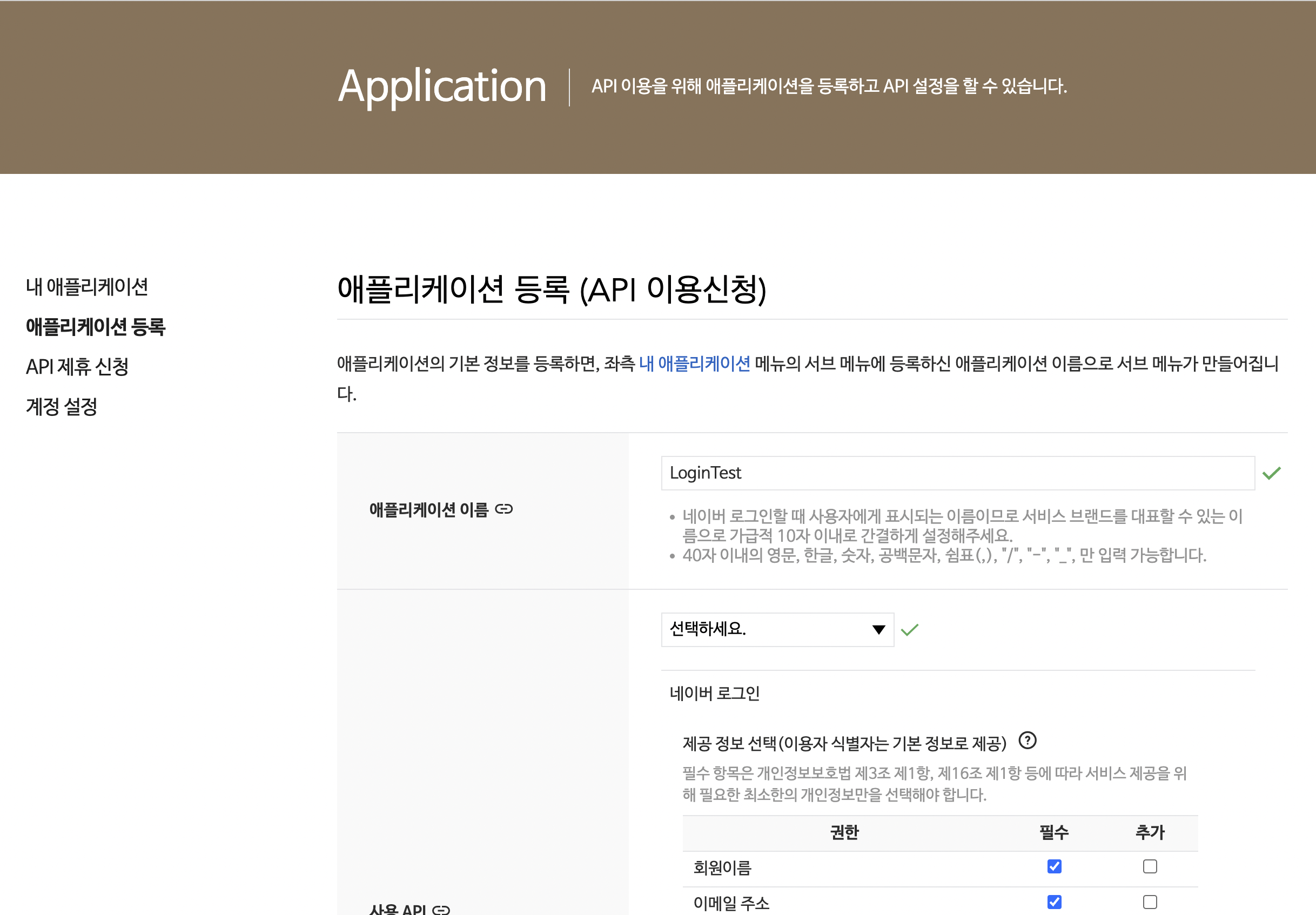 그 후, 어플리케이션 등록에 들어가 어플리케이션 정보를 등록하여줍니다.