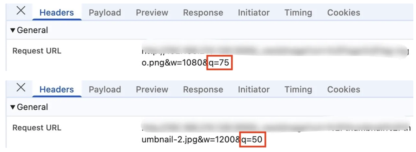 최적화된 이미지 품질을 조절하는 옵션으로, 디폴트 값은 75이고 쿼리스트링으로 확인 가능
