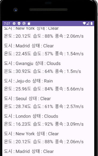 WeatherArray.add(WeatherVO(cityList.get(i), state, temp, humidity, speed))