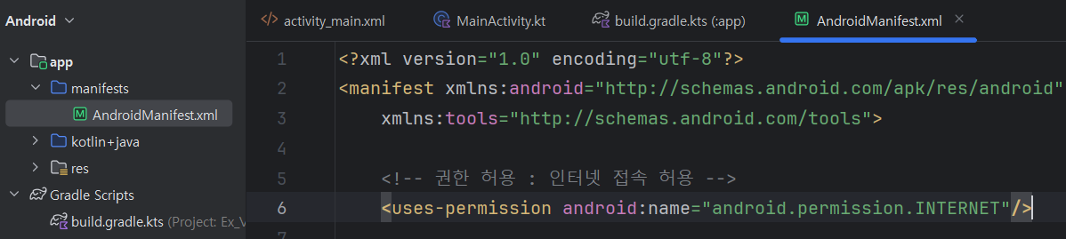 <!-- 권한 허용 : 인터넷 접속 허용 -->