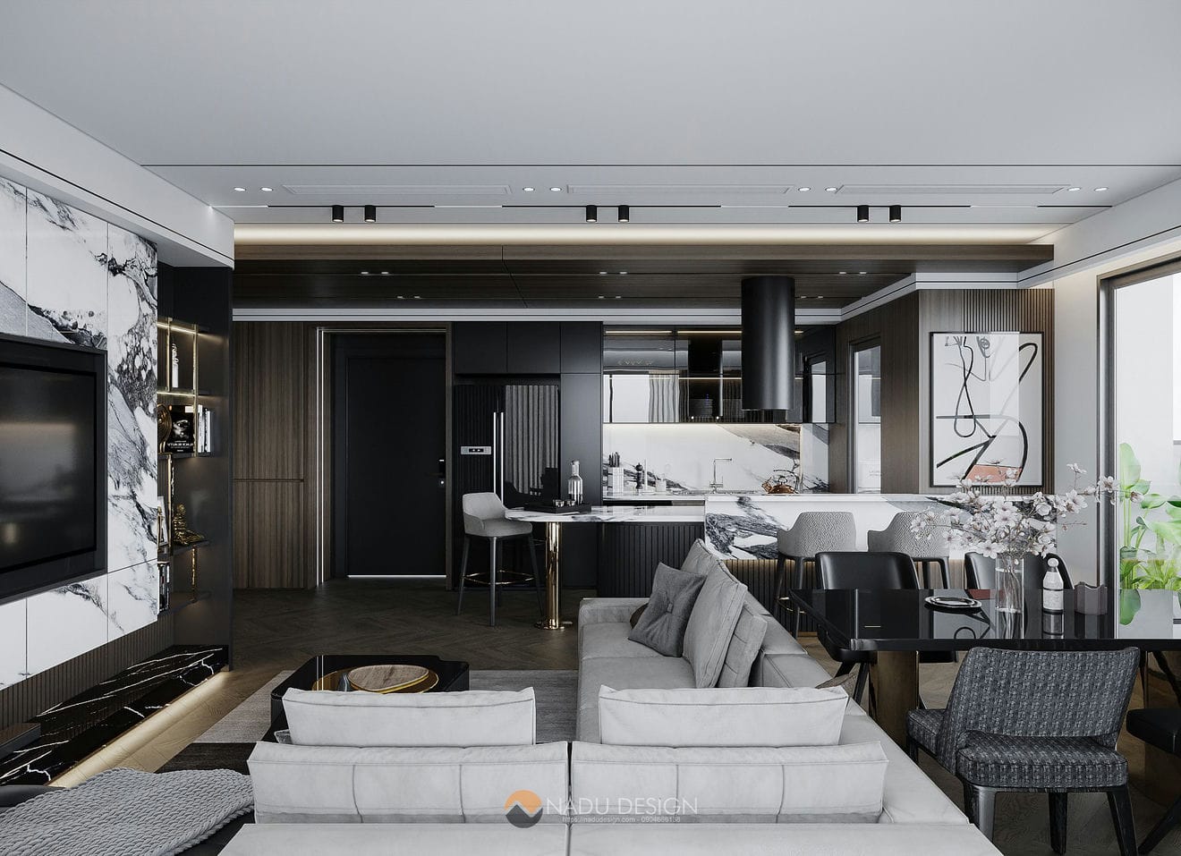 Designing a kitchen for a small apartment is a challenge that requires creativity and science to optimize space while ensuring full amenities. One of the most important factors is the choice of color. Light colors such as white, light gray, or pastel not only bring a more spacious feeling but also help reflect natural light better, creating an airy feeling. Combined with that, the use of smart furniture and multi-function equipment is indispensable. For example, an induction cooker combined with an oven, a built-in refrigerator, or a kitchen cabinet designed high to the ceiling will help maximize storage space without making the space cramped.