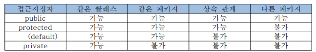 - 접근 지정하는 부모의 레벨보다 같거나 확대만 가능하다.