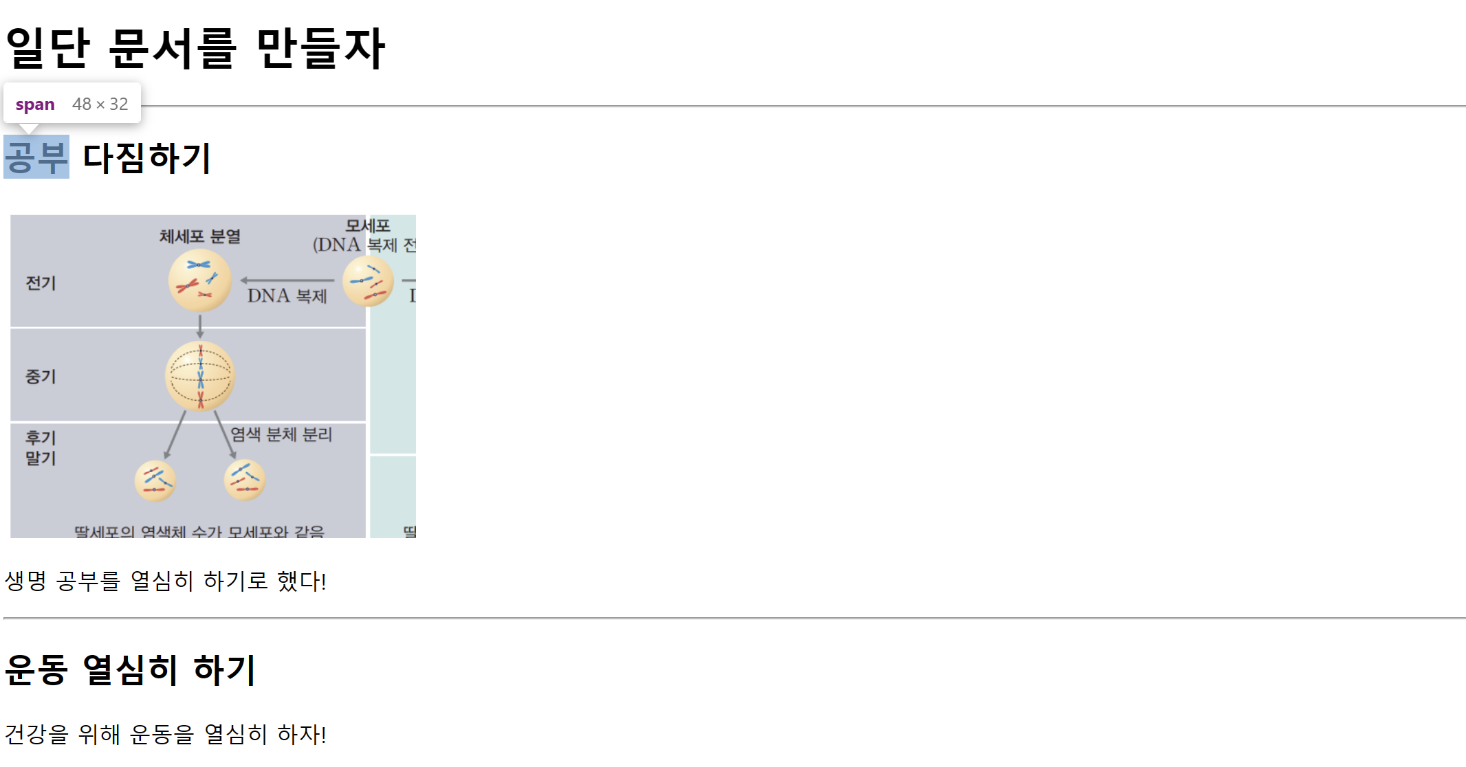 <h2><span>운동</span> 열심히 하기</h2>
