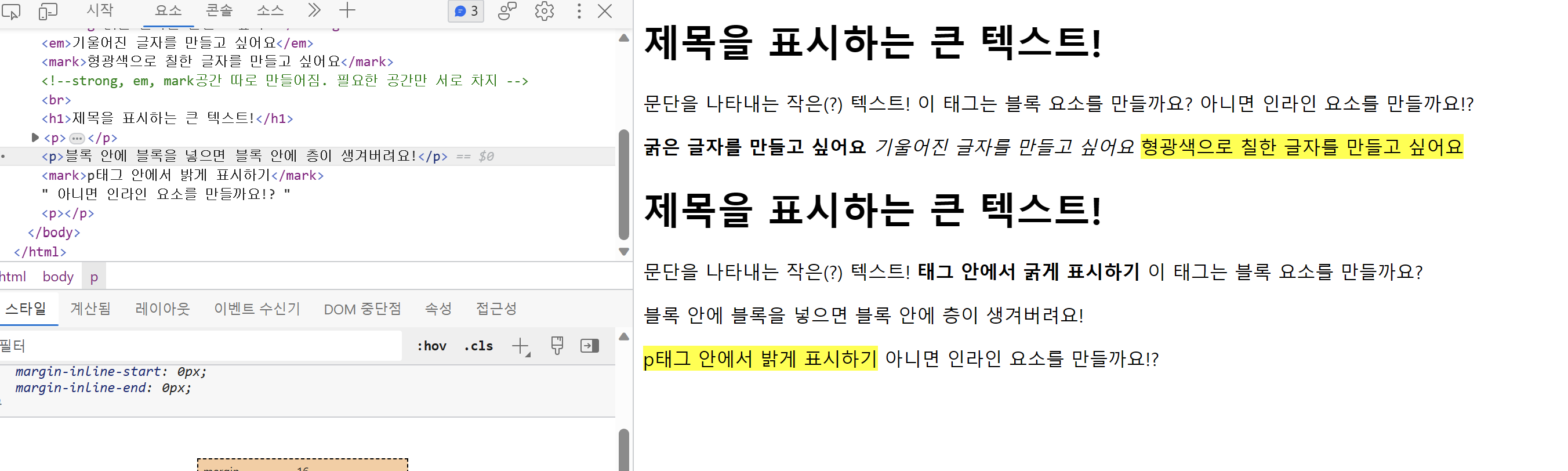 <mark>p태그 안에서 밝게 표시하기</mark>