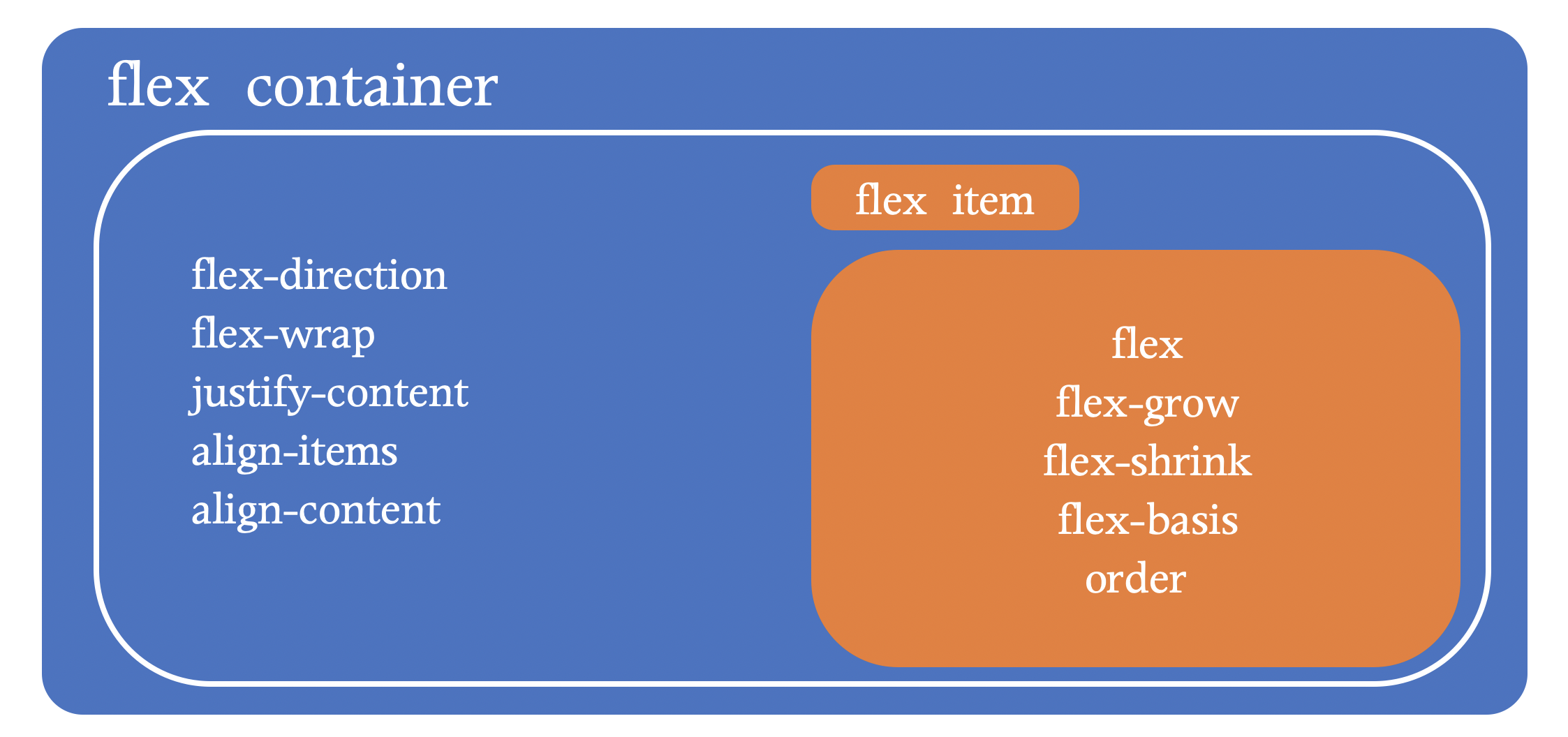 flex container과 item들의 속성은 다음과 같습니다.
