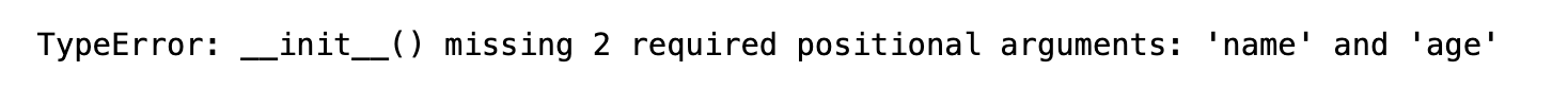 생성자 init함수에서 name, age agrument가 필요합니다.
