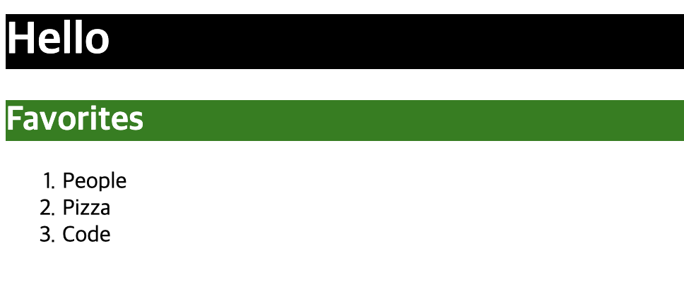 <h1 style="background-color: black; color: white;">나Hello</h1>