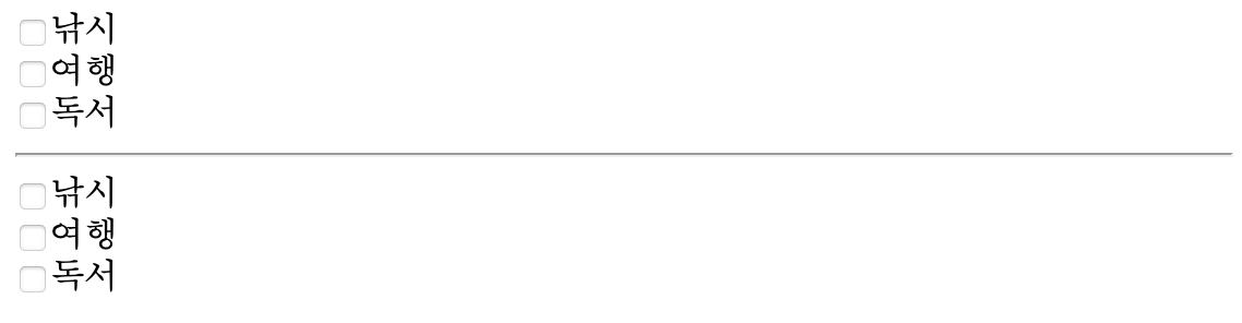 --> 두가지 선택 항목을 중복으로 선택할 수 X