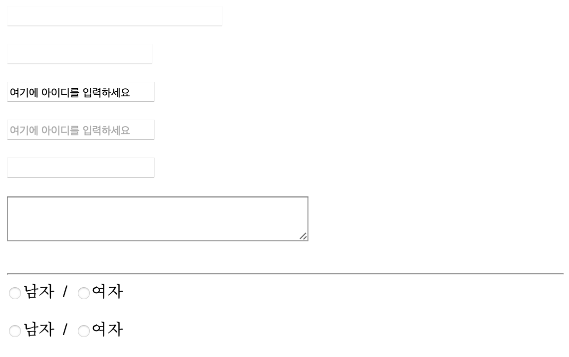 <input type="radio" name="gender"/> 남자 / <input type="radio" name="gender"/> 여자