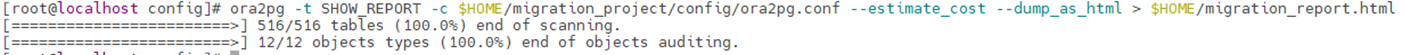 # ora2pg -t TEST -c $HOMOE/migration_project/config/ora2pg.conf