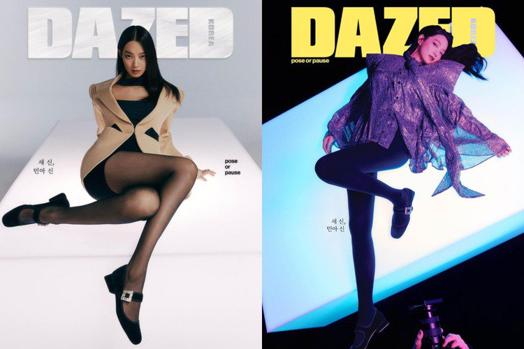 身為Roger Vivier品牌大使的申敏兒過去曾自導自演形象短片,本身就有張時尚臉且又是模特兒出身的他作為大使再適合不過。近日他與韓國雜誌《DAZED》合作,為Roger Vivier拍攝一系列封面,每張都氣場爆棚,非常吸睛。官方一共釋出四組畫報,申敏兒也換上四種不同的風格拍攝形象大片。其中兩組躺地的畫報最為吸引人,他先是換上性感OL的裝扮,穿上透膚黑絲襪,腳穿Roger Vivier經典鑽扣鞋,美腿長到畫報都快裝不下。另一組則是慵懶躺地,穿著亮片墊肩上衣搭配黑色Legging的他也意外露出渾圓翹臀,下身比例好得令人羨慕。
