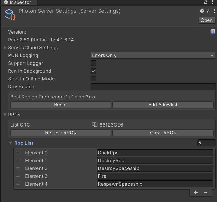 해당 스크립터블 오브젝트를 통해 서버 세팅이 가능하다