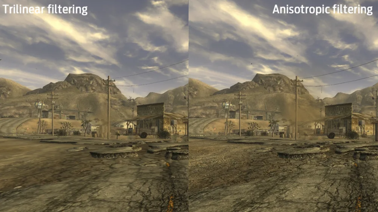 FXAA, SMAA 등등의 anti aliasing과 Anisotropic filtering (비등방성 필터링)도 있음.