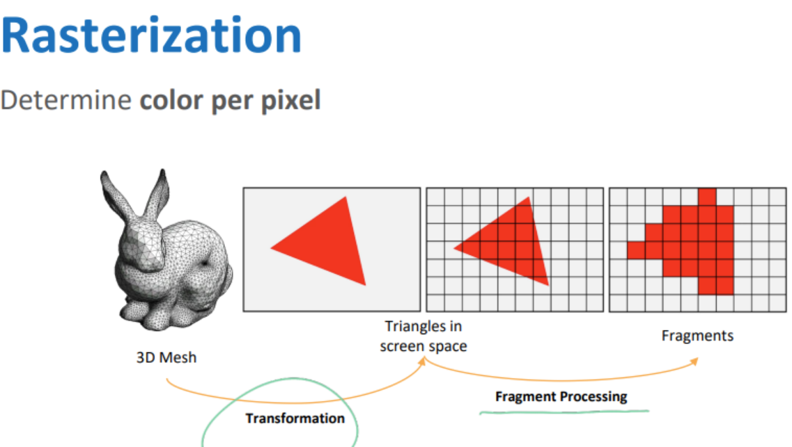 하나하나의 픽셀은 fragment(조각). 프로그래밍이 불가능한 단계