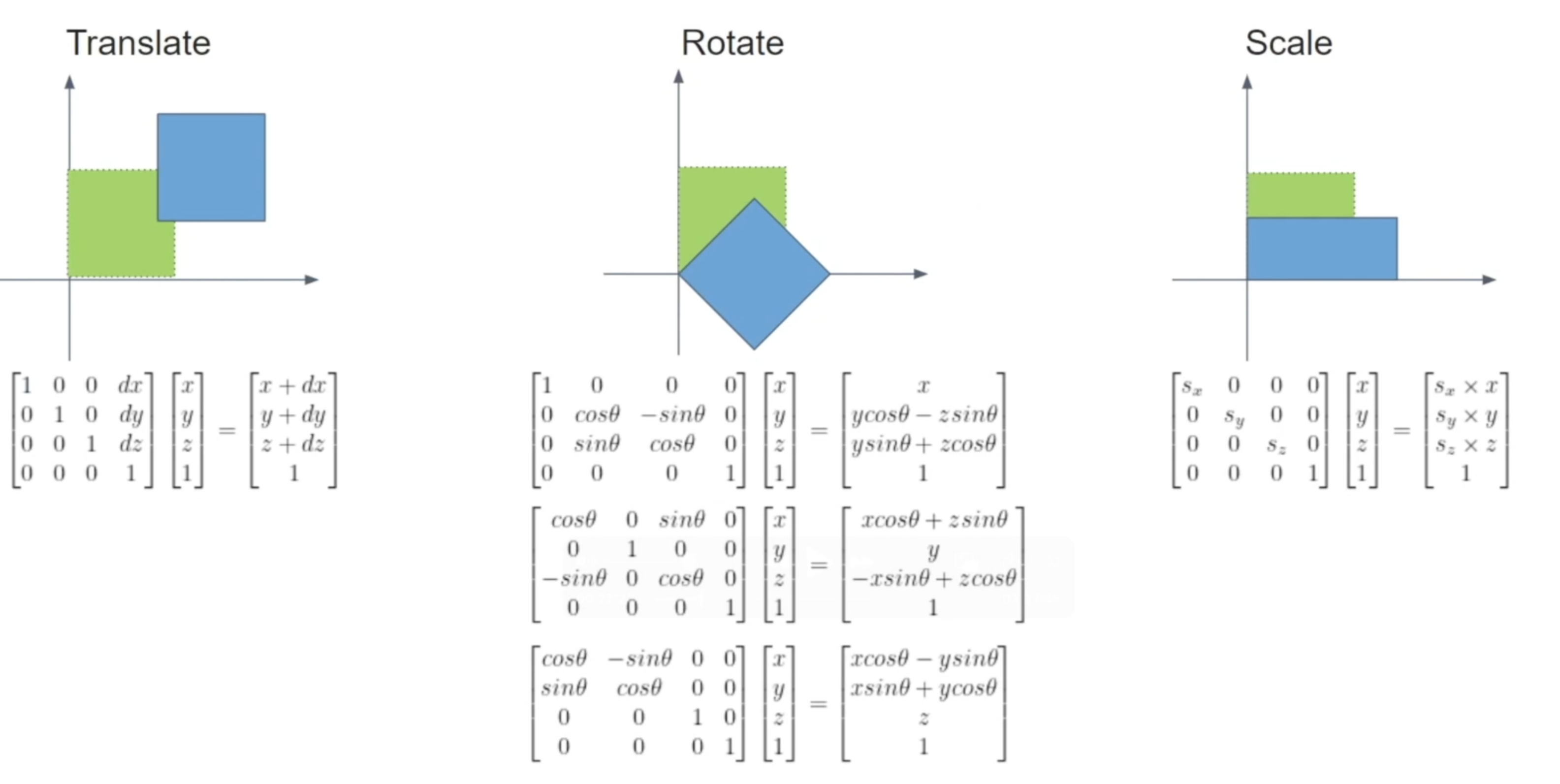 이 모든 과정은 변환에 해당하는 행렬들과 오브젝트의 정점들의 행렬을 계산해서 처리한다.