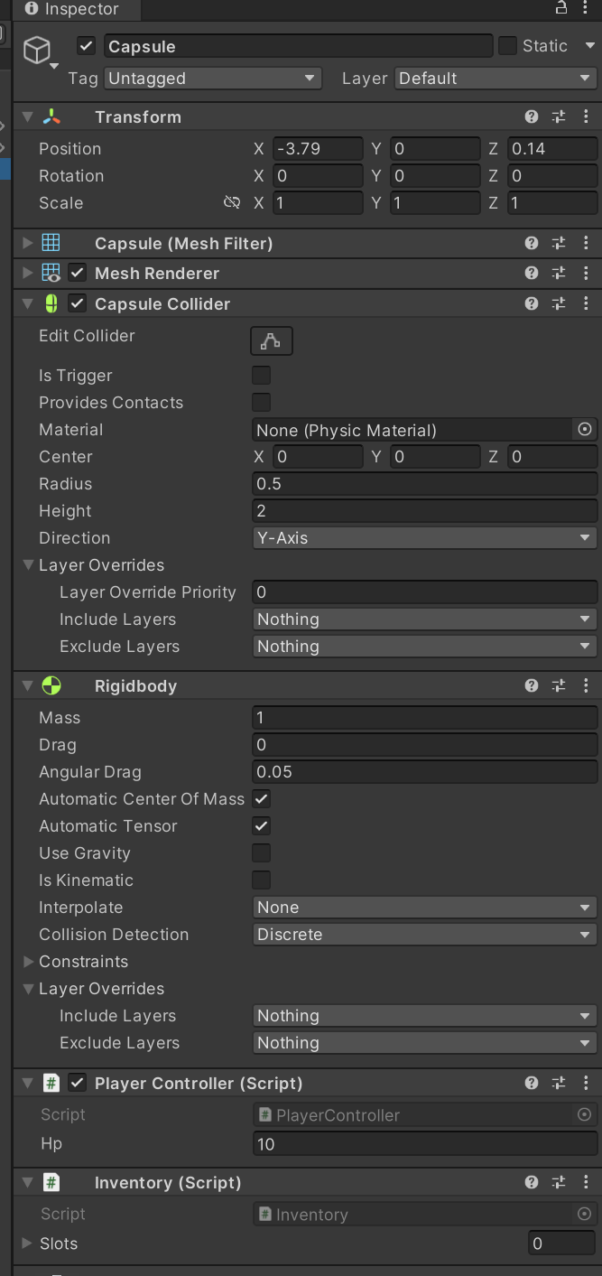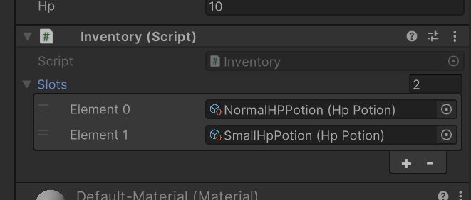 hp, 아이템들을 저장할 inventory를 필드로 가진다public class Inventory : MonoBehaviour