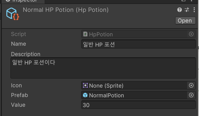 fileName과 같이 기본 값은 Hp Potion으로 나온다