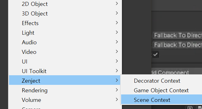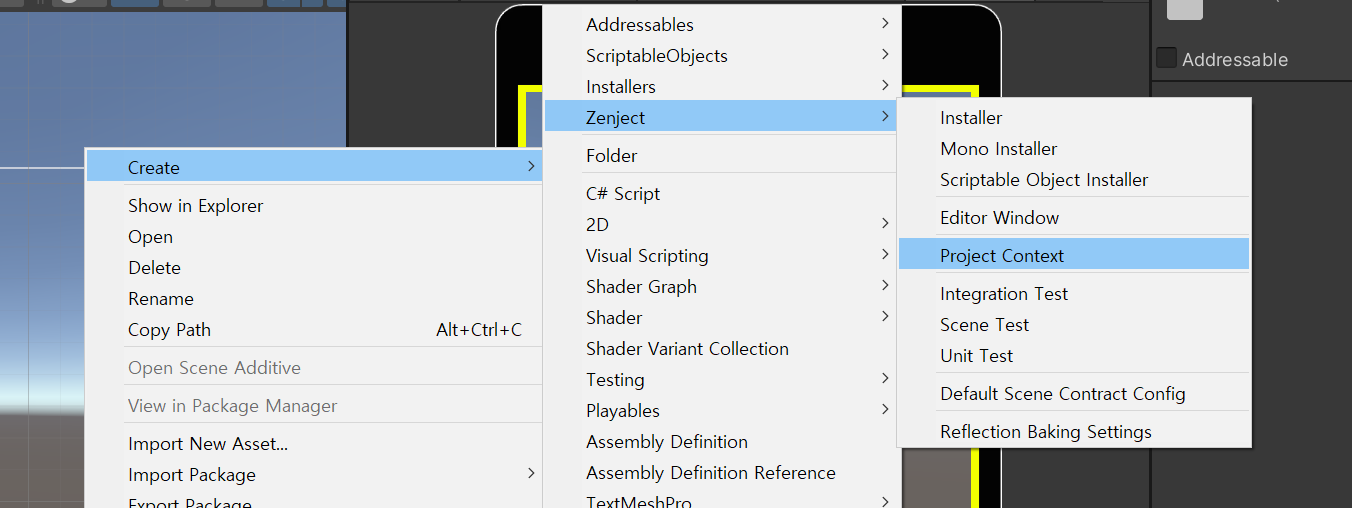 의존성 주입 도구이다. MonoBehaviour로 구성된 Installer이다. 즉, 컴포넌트로 추가가 가능하다.