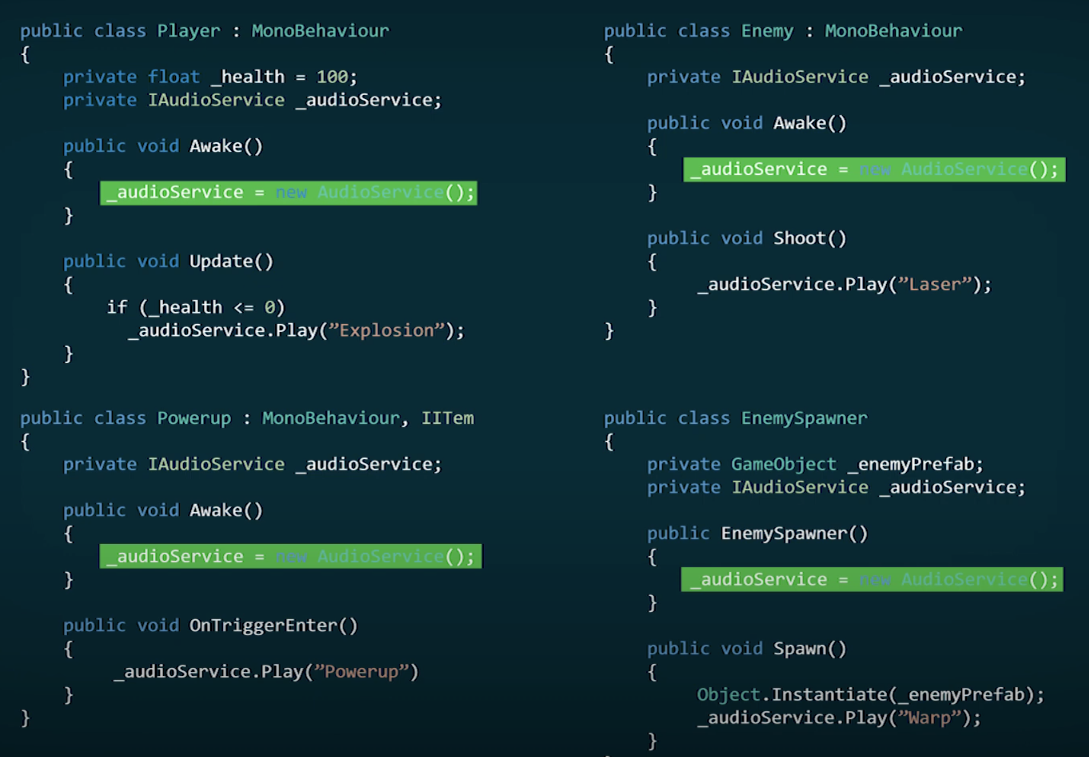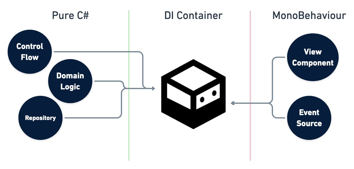 이러한 문제들을 IoC 컨테너이너인 Zenject 프레임워크를 통해서 해결한다.