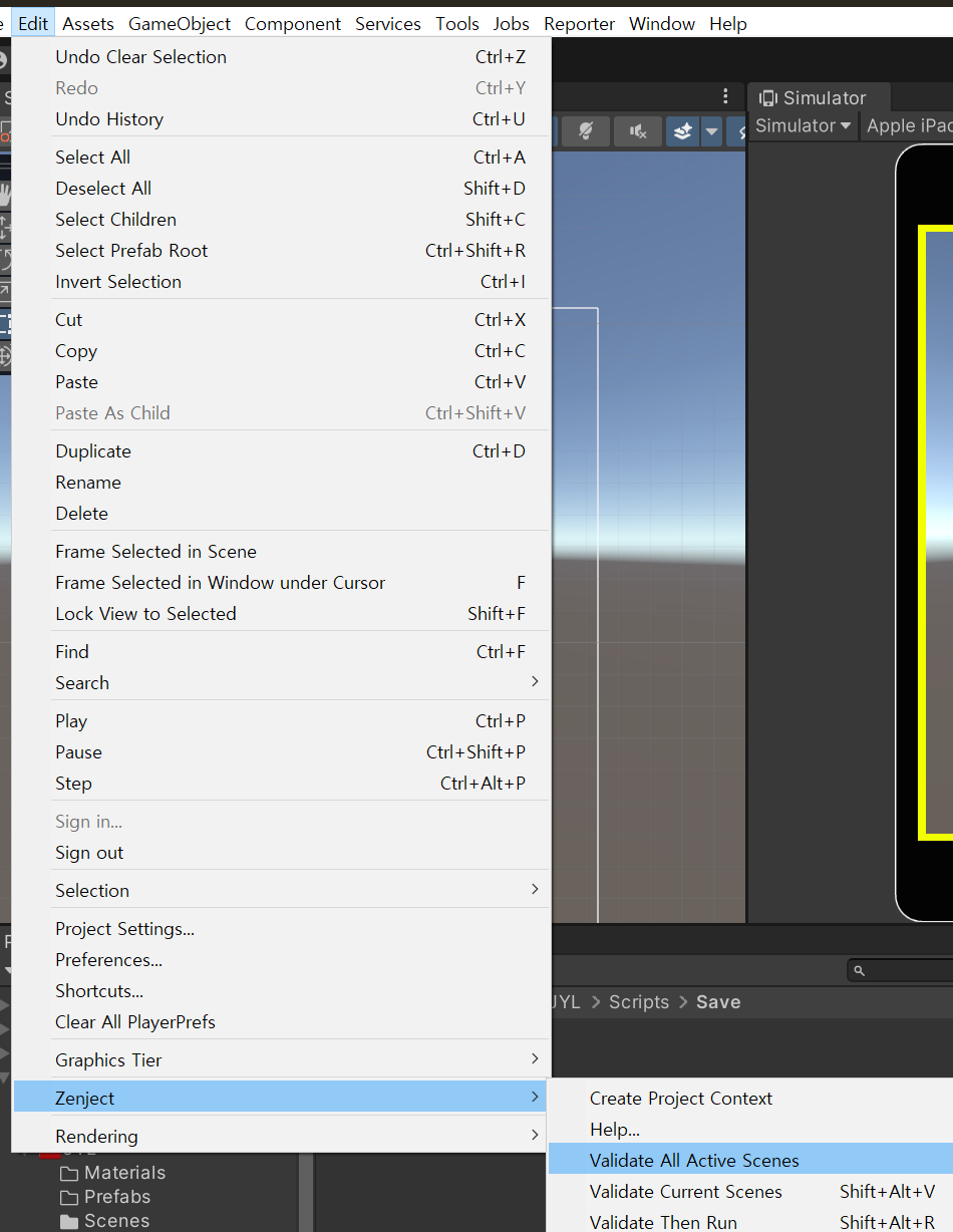 현재 프로젝트 또는 현재 씬에서 Zenject에 의한 의존성 주입에 문제가 없는지 체크하는 기능이 있다.